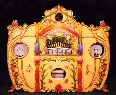 added for an additional cost. Plays 15 tune "O" rolls that automatically rewind to play again. Height 6 feet, width 9 feet and depth 3 feet. Weight - 350 lbs. Roll operated or MIDI. Extra percussion instruments and accordion are included in the MIDI version. Download our catalog from the homepage for prices.
